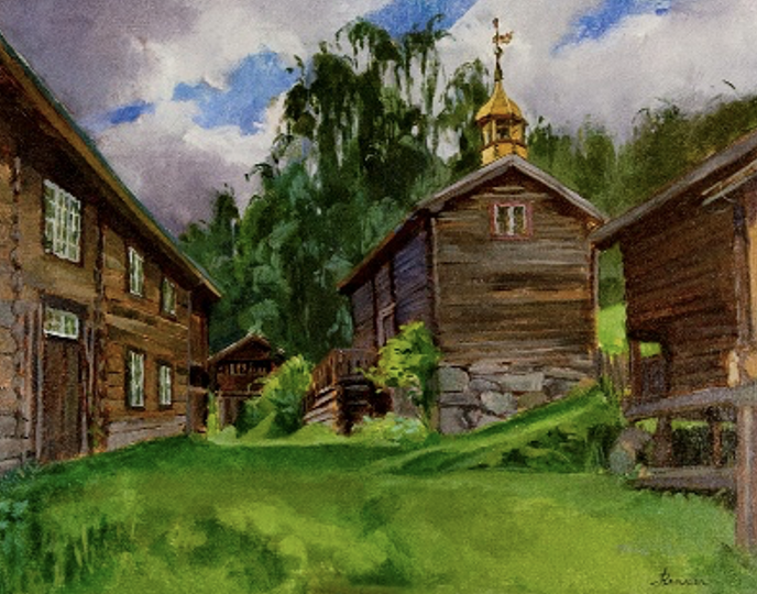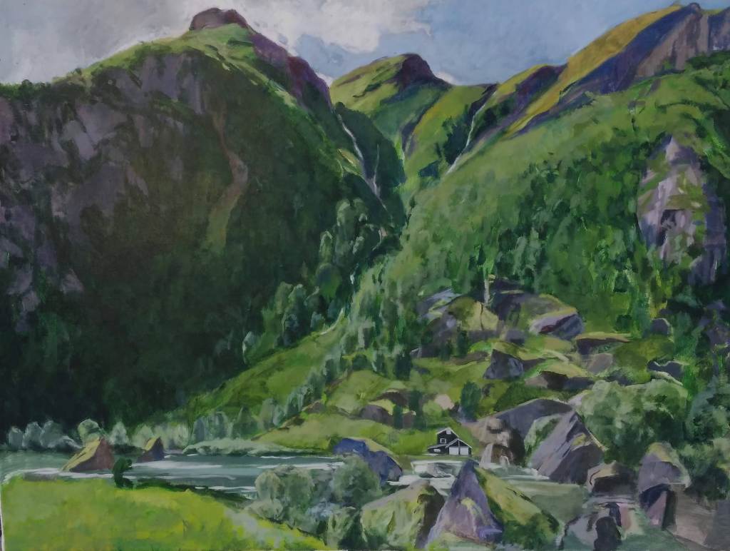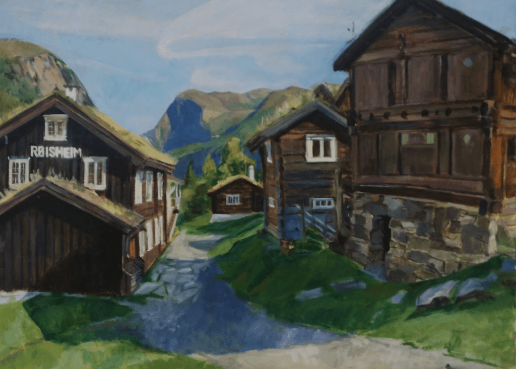 Serie med ute maleri fra Bøverdalen av Arna Rennan
